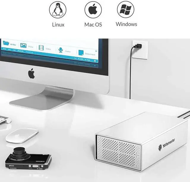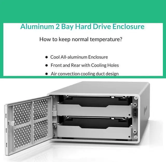 The dual-bay hard drive enclosure can house up to 2 hard drives, single disk support up to 10TB. It let you handle various work demands easily, like digital imaging, video production/editing, duplicating footage, create and manage archives.