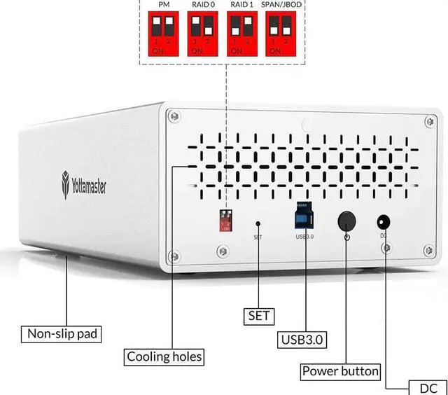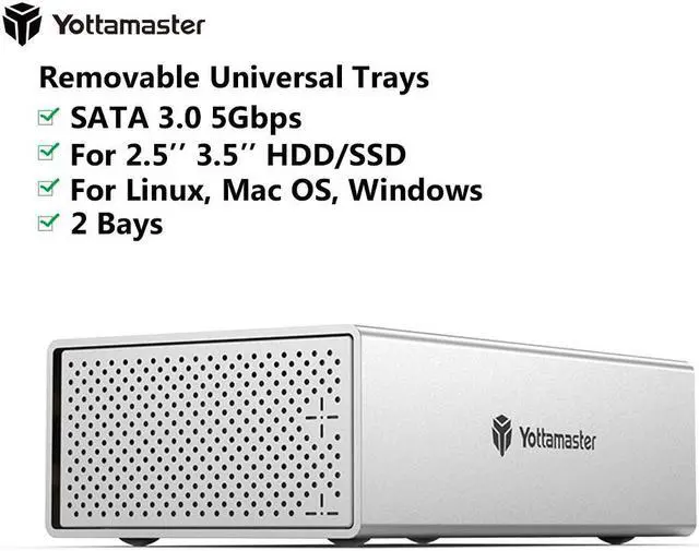 This dual-bay HDD enclosure adopt SATA III protocol, transfer rate up to 6Gbps (MAX). Equipped with a versatile USB3.0 Type-B interface to connect other peripheral devices. Compatible with most Windows, Mac and Linux systems.