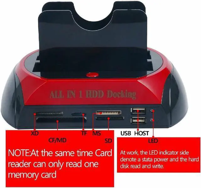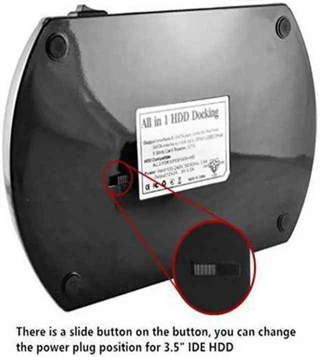 *Use IDE HDD,Please Slide the IDE power push button to the correct side( 3.5” IDE slot) if the LED power light turn on. *This dock can not clone any hard drive.