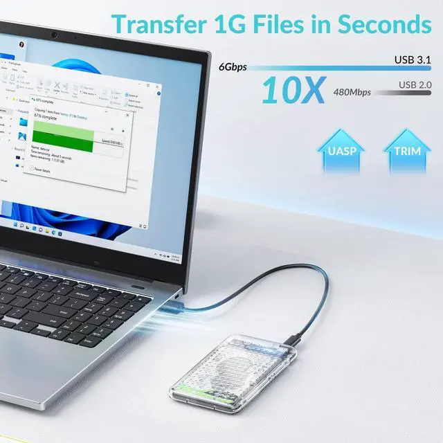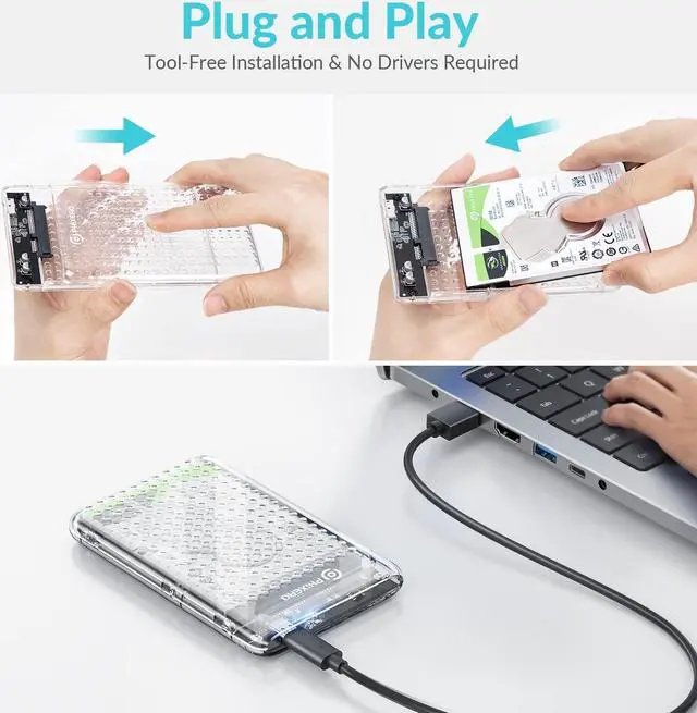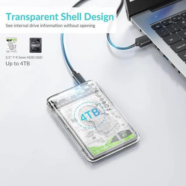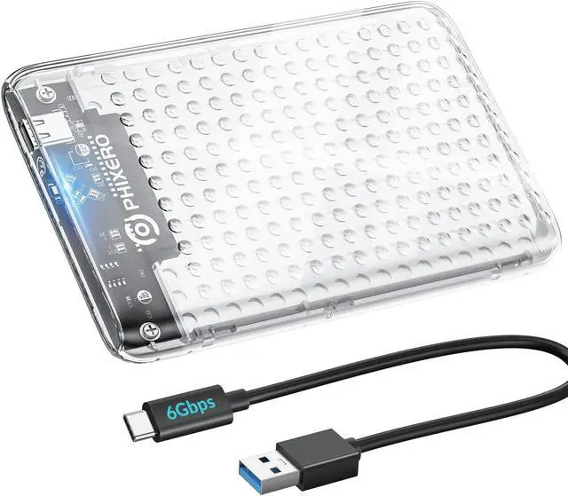 ![Alt view image 6 of 7 - PHIXERO 2.5" Hard Drive Enclosure, 6Gbps USB 3.1 Gen 1 to SATA III Tool-Free SSD Hard Drive Enclosure for 2.5 inch 7mm/9.5mm SATA HDD & SSD [UASP Supported] Transparent Type C](https://c1.neweggimages.com/productimage/nb640/BC4PS2403160FJCFZCB.jpg)