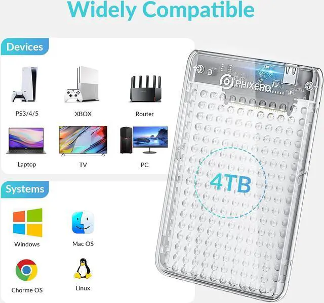 ![Main image of PHIXERO 2.5" Hard Drive Enclosure, 6Gbps USB 3.1 Gen 1 to SATA III Tool-Free SSD Hard Drive Enclosure for 2.5 inch 7mm/9.5mm SATA HDD & SSD [UASP Supported] Transparent Type C](https://c1.neweggimages.com/productimage/nb640/BC4PS2403160FJC6WD7.jpg)