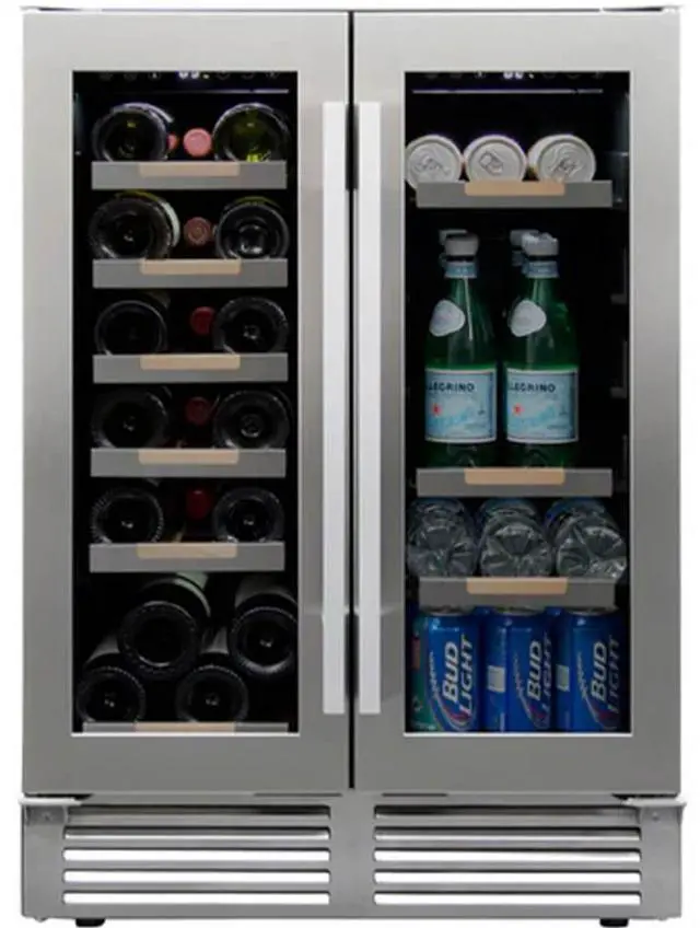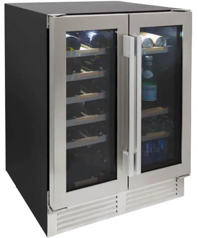 Keep both wine and canned beverages chilled to perfection with the Avanti Elite Side by Side Wine and Beverage Cooler. Ideal for entertaining, this beverage cooler holds up to 19 wine bottles and 56 cans in two different, side by side cooling zones. Store wine on one side at 40 - 65F and other beverages on the other side at 37 - 65F. Designed for built-in or freestanding use, the stainless steel beverage and wine cooler fits perfectly in your office, man cave, she-shed, bar, basement or anywhere you want to enjoy a cold drink.