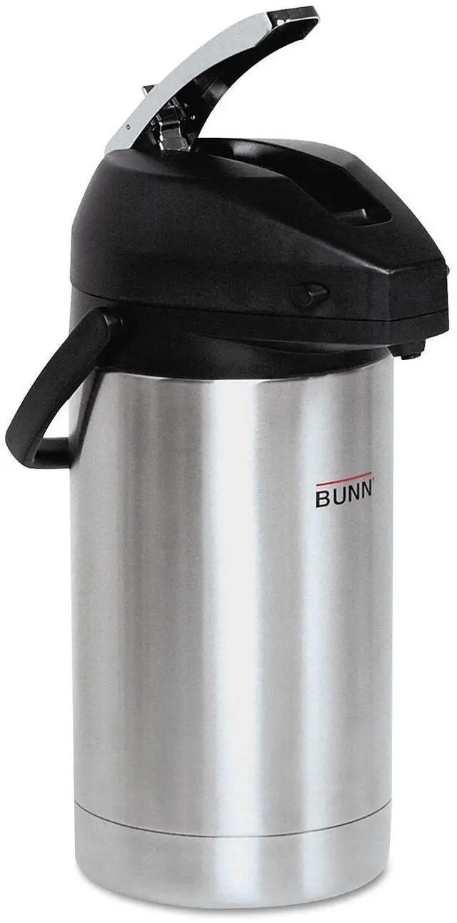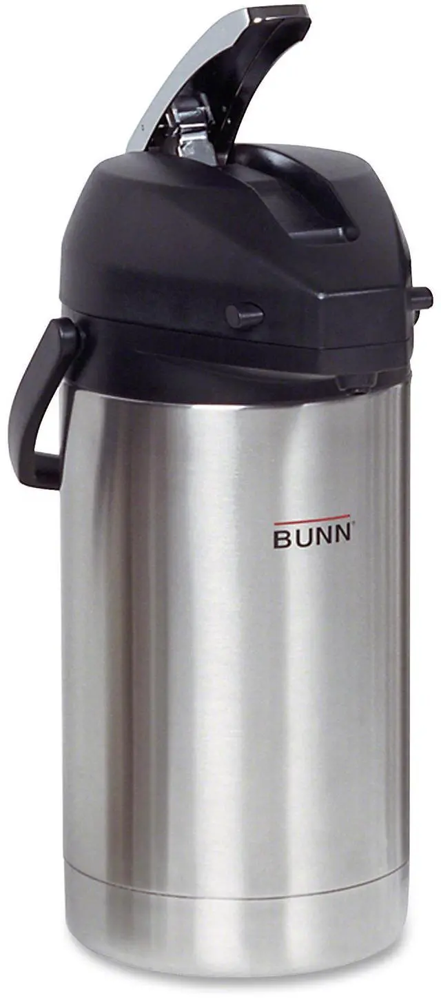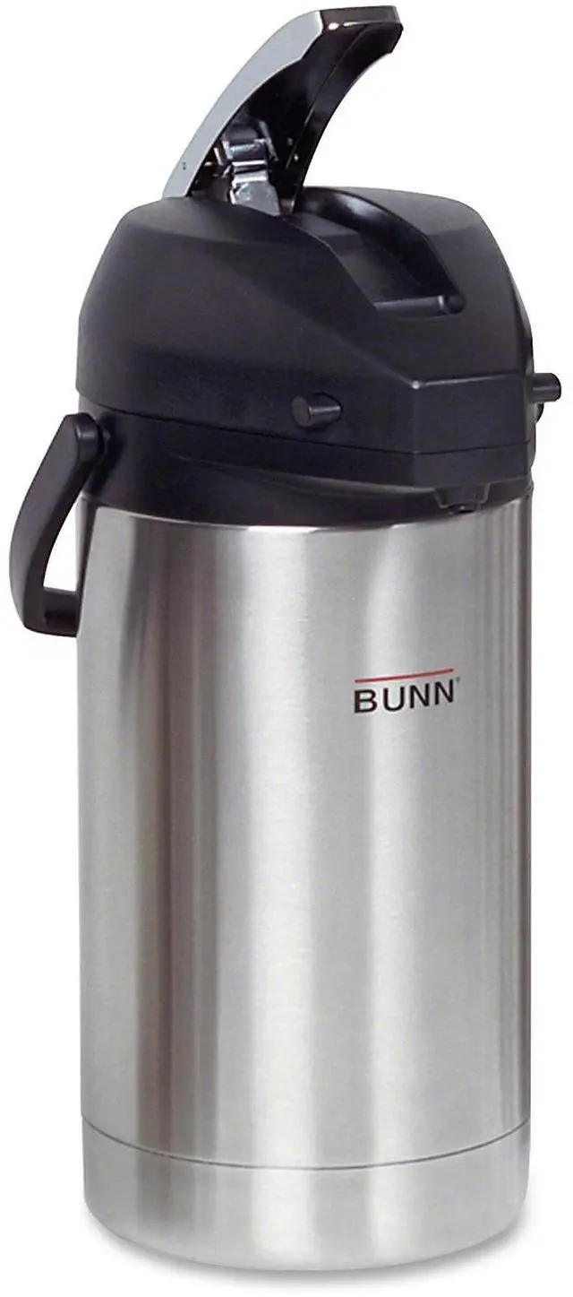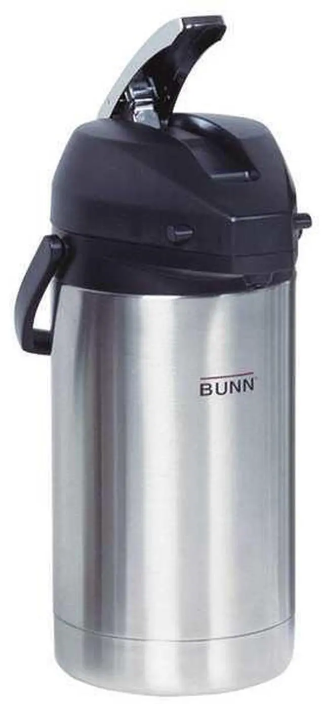 Conveniently brew directly from brewer. Beverage dispenser features an all-stainless steel construction and lever style pump for easy serving. Seamless stainless steel vacuum liner is durable and ensures beverages remain cold or hot for hours. Lid is designed to swing open fully for brewing directly into airpot funnel for ease of filling and maximum heat retention. Material(s): Stainless Steel; Color(s): Stainless Steel/Black; Interior Volume Capacity: 3 L (101 oz); Warmer: No.