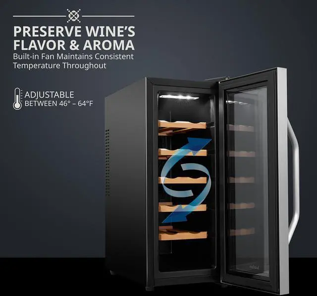 Ivation wine coolers feature a unique fan system that operates silently while still circulating air evenly throughout the cooler. This ensures that the temperature is uniform throughout the unit.