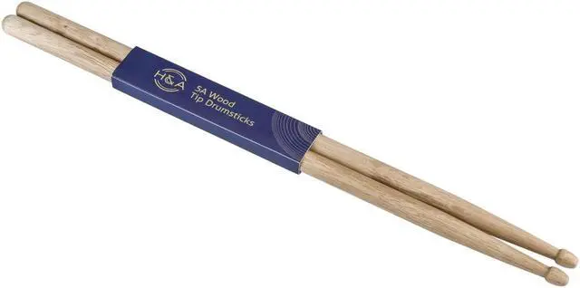 The H&A Oak 5A Wood Tip Drumstick takes our 5A drumstick design and pairs it with the solidity of oak wood. This combination results in sticks that last longer than a traditional hickory drumstick. Also because of oak's increased density, you will get a brighter cymbal sound, which is great for players looking for something in between a wood-tipped and nylon-tipped drumstick sound. These drumsticks are perfect for rock, gospel, or any genre that requires heavy hitting. The acorn tip and medium taper deliver a balanced feel with every stroke.