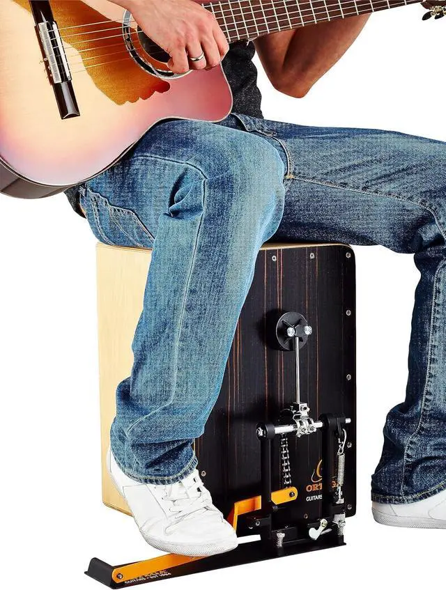 You already own a Cajon? The Ortega Percussion cajon pedal attaches firmly with yours. This pedal leaves your hands unrestricted to play along with your stringed instrument while keeping a steady kick drum rhythm beneath.