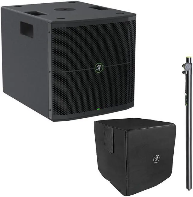 Mackie Thump115S, a powerful 15" subwoofer that complements any full-range speakerespecially the Mackie Thump and ThumpXT loudspeakers. This subwoofer is great for adding low-end to small club/band PA systems and features four application-specific voicing modes including flat, deep, punch, and variable. The Thump115S features two XLR line inputs, two high-pass XLR outputs, and two full-range XLR outputs. There is a variable crossover control, polarity invert, a defeatable front-panel LED, and mono/stereo summing for single- or dual-subwoofer deployment. Two cut-through handles are offered on the upper side of the enclosure for easy transport and lifting. An M20-threaded pole mount is included for raising your full-range speakers above the audience for proper deployment. Bundle with Mackie Slip Cover for Thump115S Subwoofer and Gravity Stands SP 2342 B 35mm to M20 Adjustable Speaker Pole (5.9').
