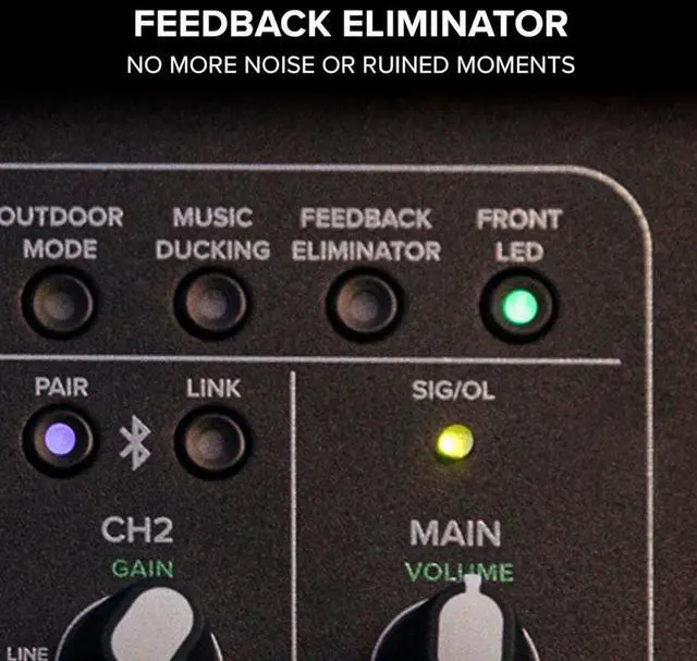Ever get a little too up close and personal with the microphone only to hear a loud, ear-destroying squeal? Thats commonly known as feedback. And its an unfortunate issue that physics wont change its mind on. But wait! Hit the Feedback Eliminator button and laugh in the face of those silly acoustic laws.