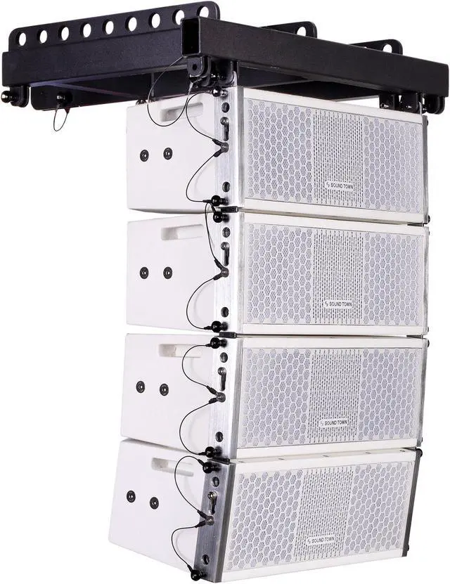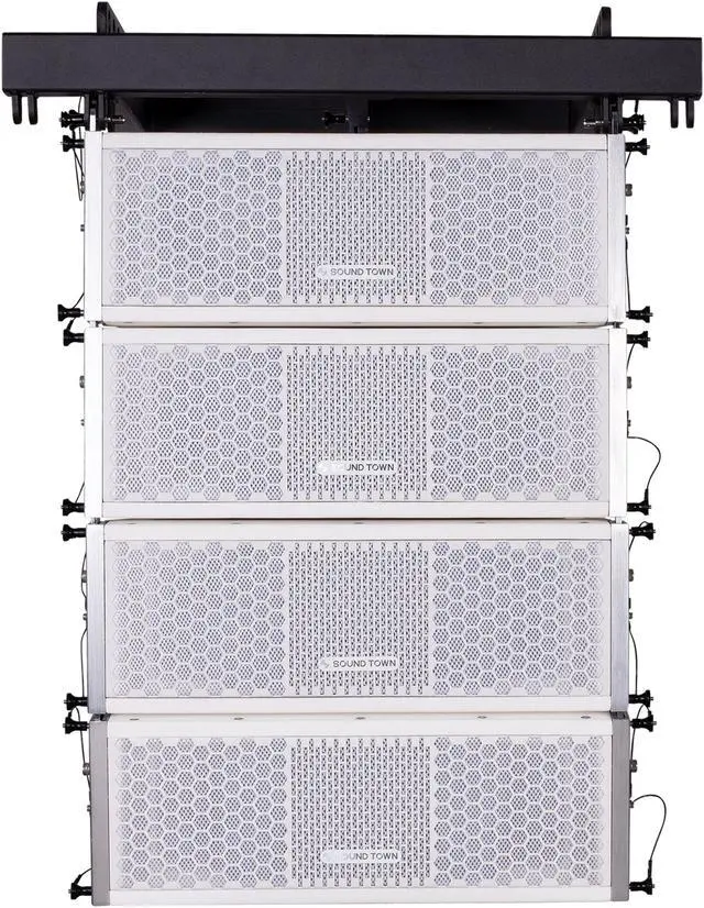 The Sound Town ZETHUS-205WV2 array speaker has multiple flying points and provides flexible mounting or suspension options with separately available mounting accessories including flying frame (ZETHUS-205FF) mounting pole (ZETHUS-205SS), and bracket (ZETHUS-205UB). It comes with white powder-coated finish, together with rugged construction and heavy-duty perforated metal grille, it holds up touring applications.