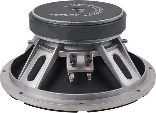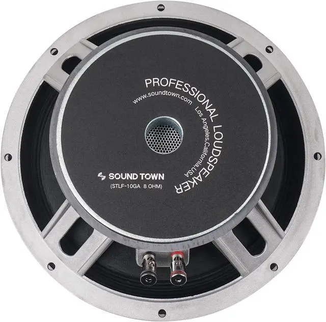 The Sound Town STLF-10GA is a 10" universal replacement woofer for PA/DJ speakers and bass guitar cabinets; it is compatible with the Sound Town PA speakers and speakers of other brands which need a 10" low-frequency driver. The woofer comes with 8-ohm impedance and has a frequency range of 65 Hz - 5 kHz. It is built in a cast aluminum chassis and has a paper cone with cloth edge. With 250W RMS, 500W peak power handling capability, the STLF-10GA delivers massive and deep bass and makes a great replacement woofer for your 10-inch PA speakers or bass guitar cabinets.