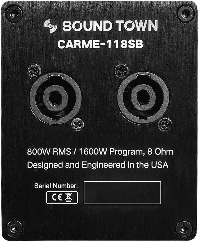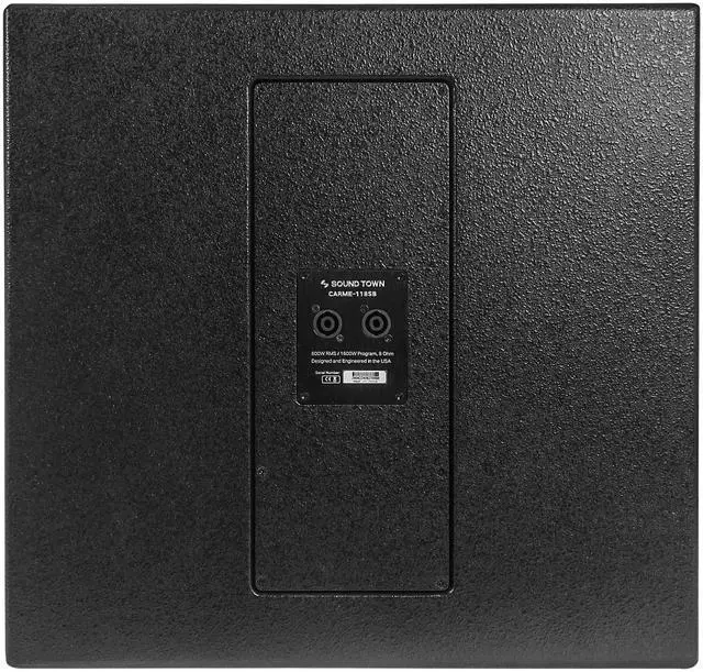 Sound Town CARME-118SB PA passive subwoofer is the ultimate option for your PA rig when it comes to filling out the bottom end of your sound system. With a high-quality pressed steel frame 18 woofer built in, Sound Town CARME-118SB subwoofer turns 1600 Watts of amplified signal into chest thumping tight and deep bass and beefs up your live music rigs. Its birch plywood enclosure damps out unwanted vibration and guarantees reliable and consistent performance With a rugged exterior, metal grille and heavy duty discreet recessed handles; this subwoofer is also road ready for touring applications.