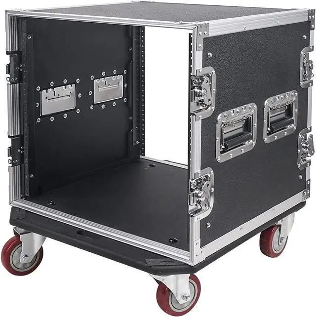 The rack case has 10U space, 17" rack depth and is compatible with a wide-variety of mixers, amplifiers, microphone receivers and other PA equipment. Its heavy-duty latches and casters allow the case to be easily transported or moved around.