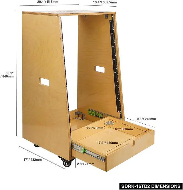 The Sound Town SDRK-16TD2 is a 16U DIY studio rack desk with 19" width. The rack desk is made from top-quality plywood with a beautiful golden oak finish. All necessary hardware included for easy assembly. If you’re in the market for an affordable studio rack and you enjoy hands-on builds, the Sound Town SDRK-16TD2 rack is the perfect option. It can be built to hold preamps, effects processors and other 19" wide rack-mountable equipment in your home or studio, providing an attractive combination of function and style.