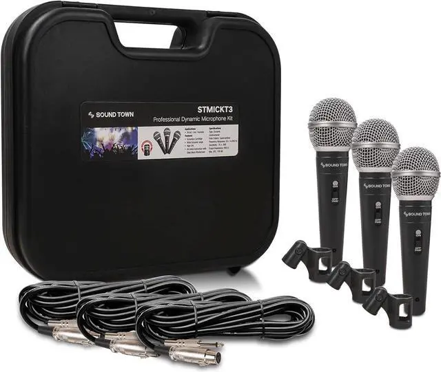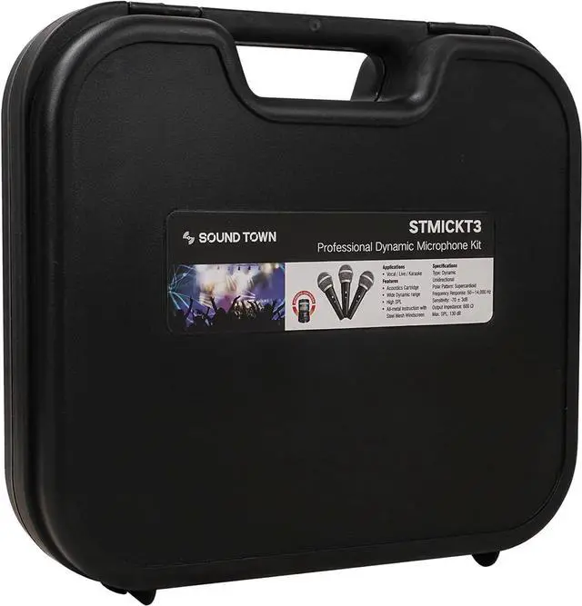 Each CARPO-L2 column speaker system is capable of 400W RMS / 800W peak power and includes a 12" powered subwoofer and a column with 8 3" full-range speakers. It comes with a built-in 2-channel mixer, offering two 1/4" and XLR inputs, and a mix-out. The speakers also have a built-in MP3 module that supports USB/SD inputs (flash drives only), making it easy to connect to various instruments and media players. The STMICKT3 microphone set in this bundle is designed for clarity. Each microphone features a cardioid pickup pattern, reducing background noise and feedback. This ensures clear sound without interference, ideal for different devices with a 1/4" mic input.