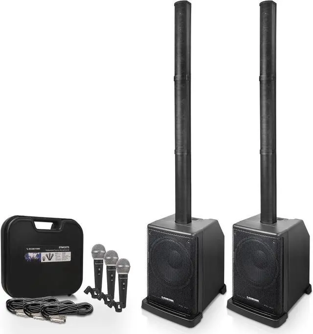 Sound Town Pair of Portable Column Speaker System, with Two Powered Subwoofers, Two Column Speakers, Three Handheld Microphones (CARPO-L2MKT3)