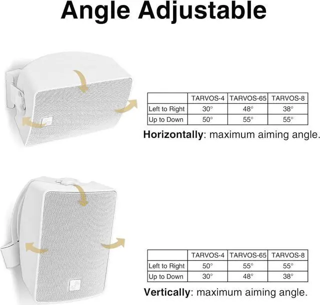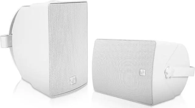The 3 TARVOS-65W-PAIR coaxial speakers (6 speakers in total) are white colored, IP 56 rated surface-mount speakers. Each speaker features a 6.5 woofer and a 1 coaxial compression driver, delivering 60W RMS and 120W program power at 8. For a more flexible installation, they come with yoke wall-mount brackets, allowing for 180° rotation and adjustable angles. The TARVOS-65W speaker has a multi-tap transformer suitable for both 70V/100V and 8 low impedance operations, facilitating straightforward connectivity with the PAC180-6 amplifier.