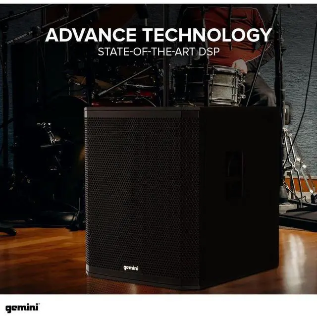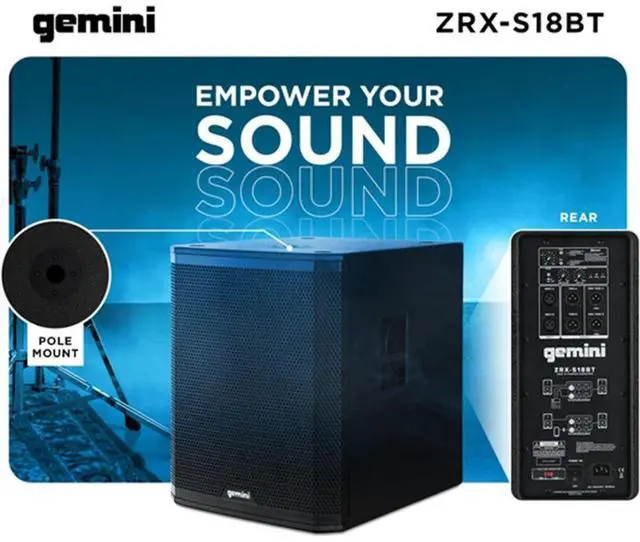 Gemini Powered PA Subwoofer with Bluetooth 2400W 18 Inch Active Professional Subwoofer, Class-D Bass Speaker for DJs, Live Sound, Stage & Event