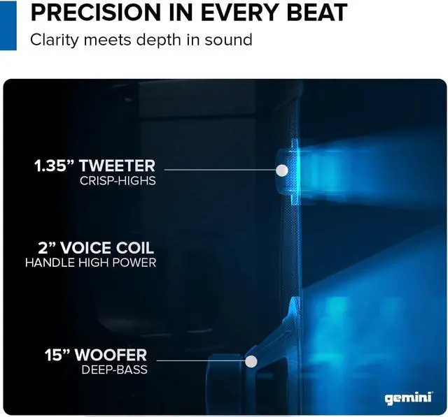 Gemini GD-215PRO: 1300W Bluetooth DJ PA Speaker with 15 Woofer, 3-Channel Mixer, TWS Link & EQ Professional Sound for DJs, Live Events & Parties