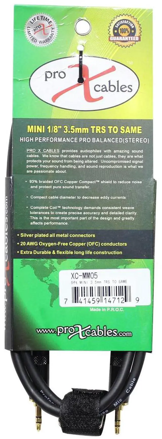 ProX 5ft Premium 1/8in to 1/8in Cable (X-Static XC-MM05 3.5 mm to 3.5 mm) iPod/Laptop Cable