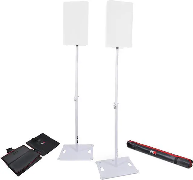 POLARIS Portable Speaker and Lighting Dual Stand Kit with Base Plate, Telescoping Pole, and Carry Bags - White Finish