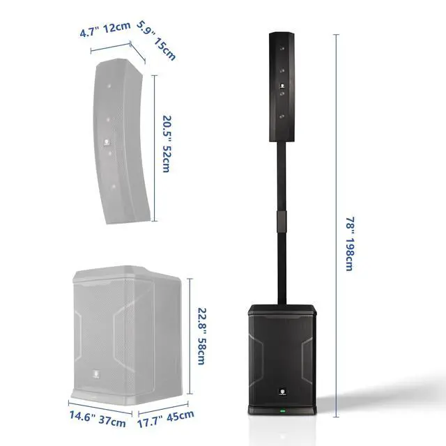 PRORECK 900EX 2000W Peak Portable Line Array Column PA System, 12" Powered Subwoofer with Built-in DSP, TWS Bluetooth for DJs, Parties, Outdoor Events, Venues
