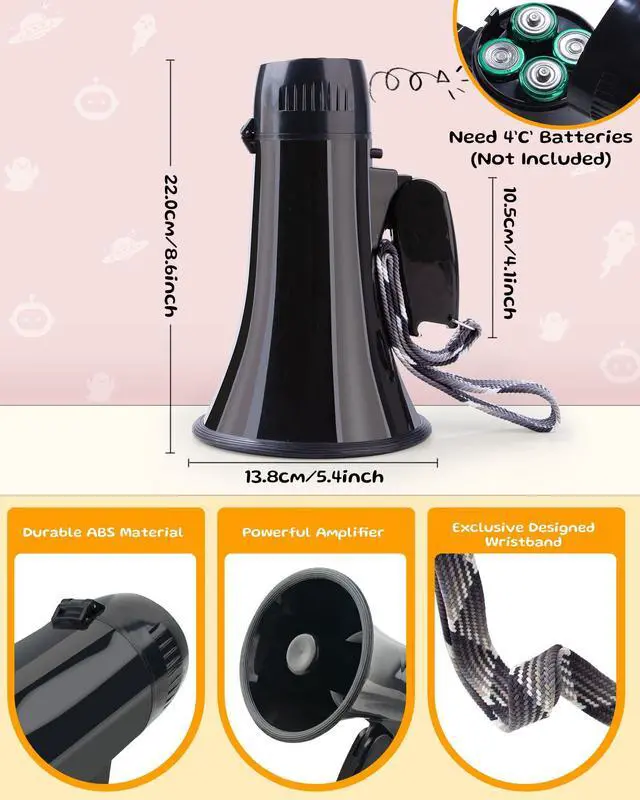 Please Note: This megaphone can capture your voice more effectively when you approach it by about 5cm(2in). Require 4 Pcs C Batteries(Not Included)