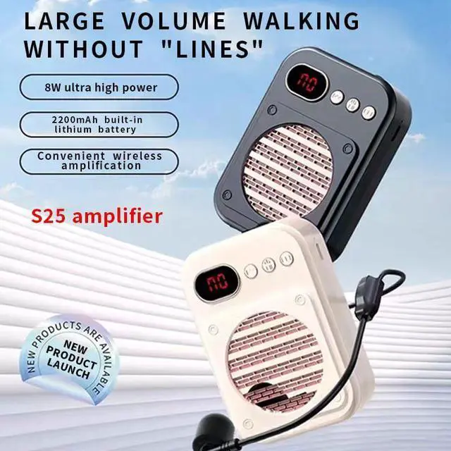 - If you are looking to purchase a personal voice amplifier that is small in size and lightweight, then S25 is right up your alley. This mini voice amplifier weighs merely 200g and fits in the palm of your hand. It is a portable microphone speaker with 8 watts output power, which can clearly amplify your voice and protect your vocal cords, allowing you to easily make your voice heard by 25 to 100 people.