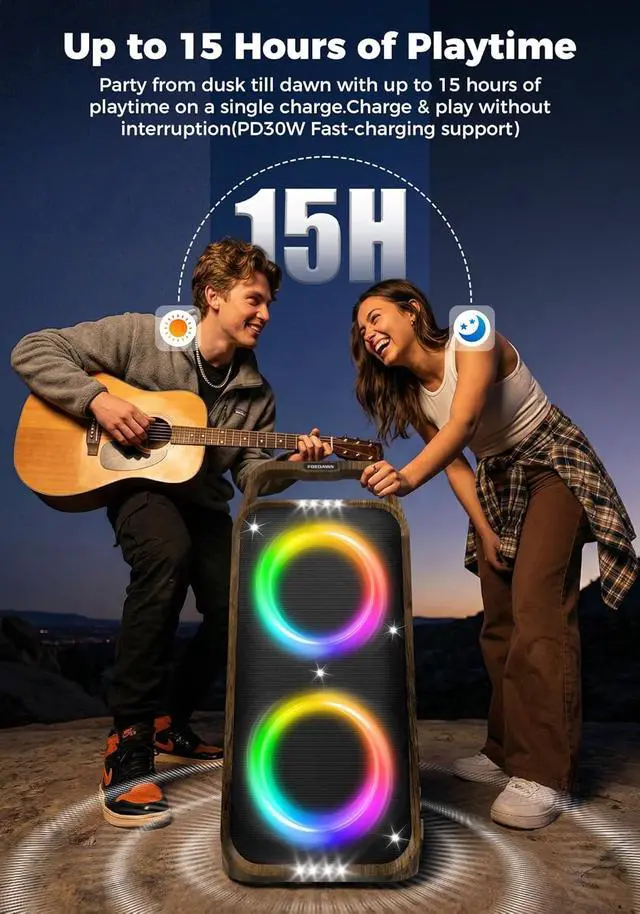Portable and Durable for Any Party Anywhere: Designed for on-the-go fun, this speaker features a rugged, portable design with a long-lasting battery that keeps the music playing for 15 hours. Take it to beach parties, camping trips, or backyard BBQsyour party, your way!