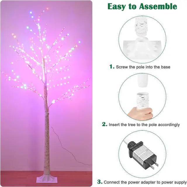 - Easy to Assemble - Fast to set up the birch tree in minutes, first screw the pole into the base, then insert the tree to the pole accordingly, and finally connect the power adapter to power supply; Remote control or power switch available for you to choose