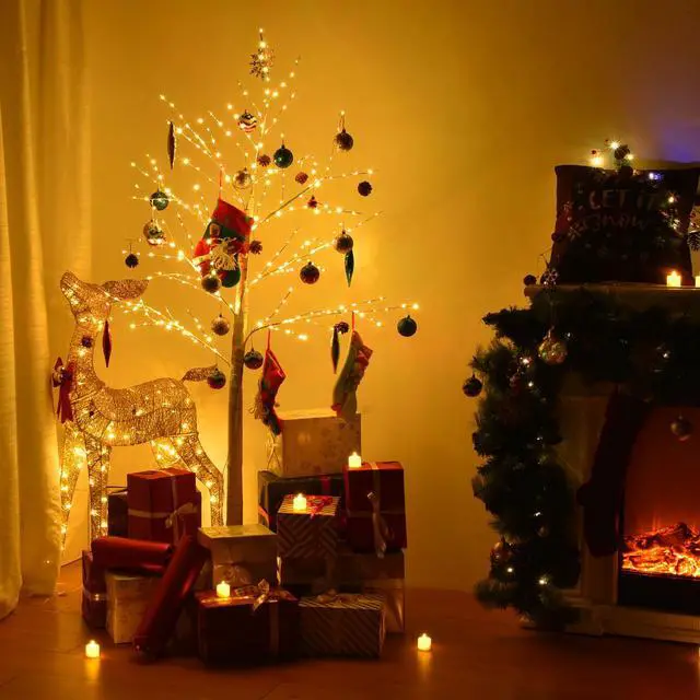 - Realistic Birch Tree - 6 ft Floor-standing Lighted Birch Tree simulates white bark & pyramid branches, 305 pcs color changing LED bulbs dotted around branches to create a colorful & splendid lighting effect, decorating your home to be a wonderland, also create a romantic ambience