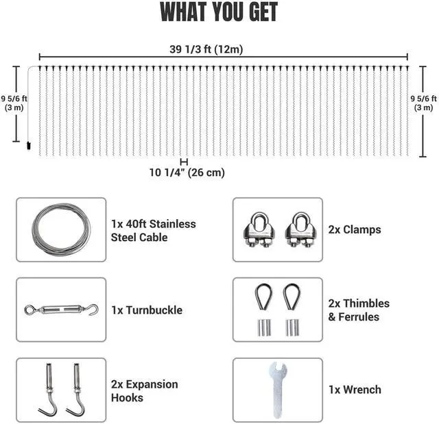 - Steel Wire for Effortless Hanging - Includes 40ft steel support cable to hang the string lights in large open areas, helping minimize strain on the light cables and prevent sagging. Ensures a secure and stunning display that lasts for years to come