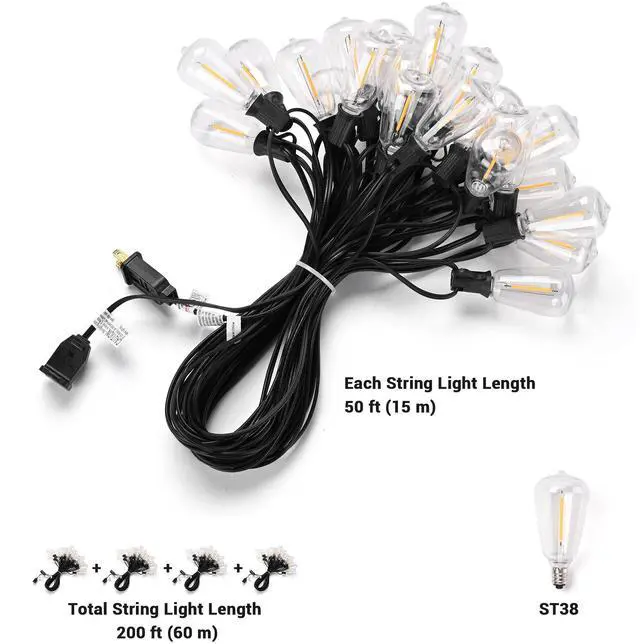 - Vintage Charm & Modern Brilliance - DELight 200ft Outdoor Patio Lights boast 100 pcs vintage-style Edison bulbs that cast warm, inviting glows throughout space. Instantly create a cozy and enchanting ambiance, adding a touch of timeless elegance to any setting