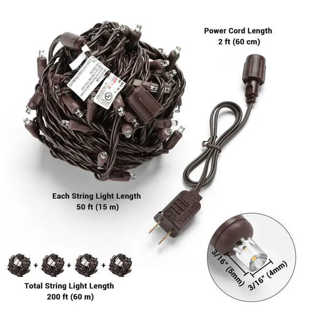 - Total String Light Length 200 ft (60 m)