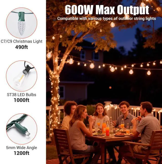 - Universal Compatibility - This dimmer is compatible with DELight dimmable outdoor lights, including globe lights, outdoor string lights, curtain lights, Christmas C7/C9 lights, and 5mm wide angle conical lights. Unleash your creativity and transform any outdoor space