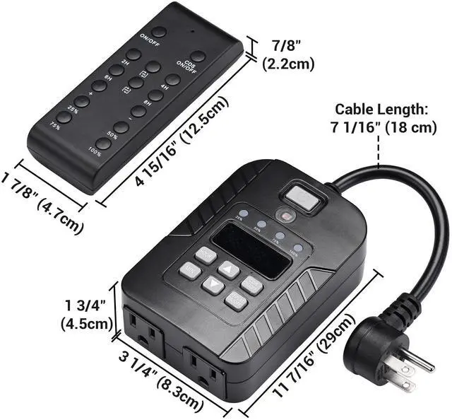 - Dual Control & Durability - Enjoy wireless control with the included remote controller (100FT/30m range) or easily adjust settings directly on the dimmer's digital display. The intuitive digit countdown and button design make operation simple. FCC & ETL certified dimmer with durable PC shell and SJTW-3*18AWG cord ensures long-lasting use