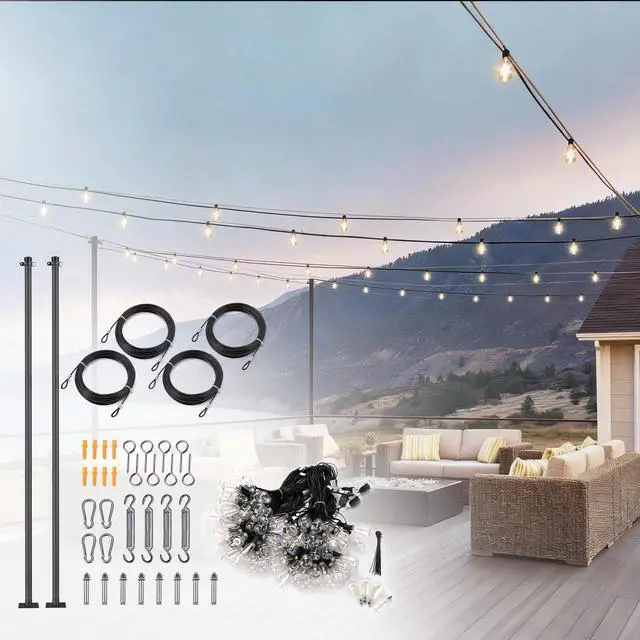 - Built to Last - Crafted with durable steel poles and weather-resistant hardware, this outdoor string light set is designed to withstand the elements. The sturdy 1/8" thick steel poles can withstand up to 58 kg/N of pulling force