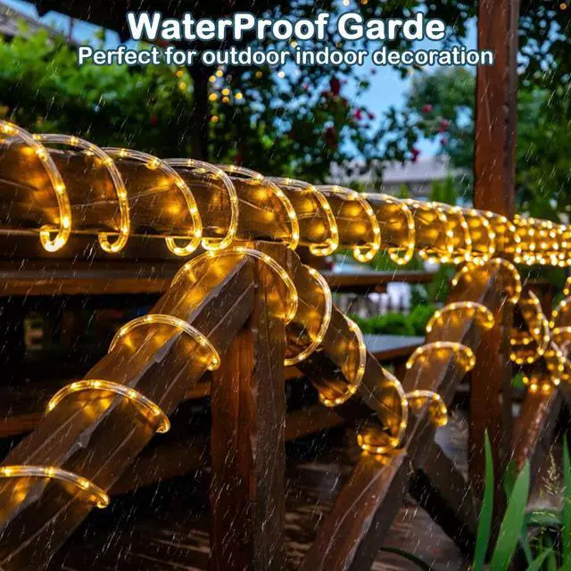 This rope light operated by safety voltage,no danger to people even the light diving in water(power controller do not put into water),make it no worry about outdoor rainy day.further more Safety voltage operate make the LED more stable and less heat emission, enable longer life span and Eco-friendly,the controller with memory function, remember the setting last time you before you turn off.8 lighting modes,freely change the modes according to your mood and atmosphere.Excellent Decoration Effect for Christmas, Party, Wedding, Celebration, and all other kinds of Decoration Lighting