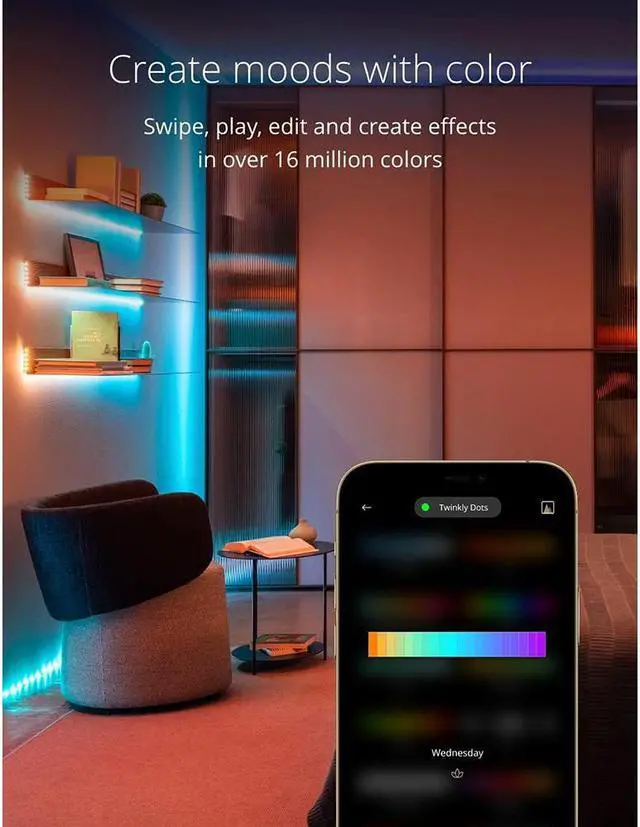 The app helps you configure Twinkly lights with ease. Bluetooth connectivity pairs the lights to your smartphone through the Twinkly app for iOS or Android. You can customize, create and apply effects, set timer, dim lights, and switch between multiple strings of Twinkly lights.