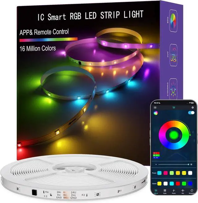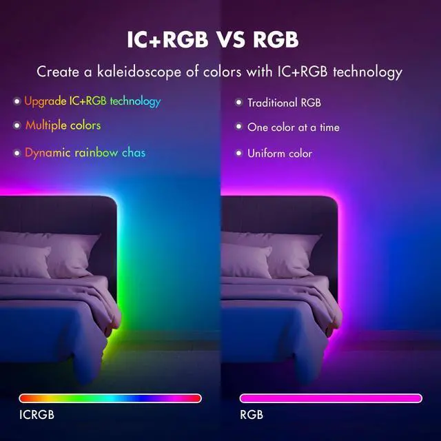 Upgraded IC Smart RGB Technology: Unlike traditional single-color RGB strips smart IC technology enables multi-color display across segments within a single strip. Effortlessly create rich gradient colors to achieve popular dynamic effects like starry sky gradients and flowing chase lights.
