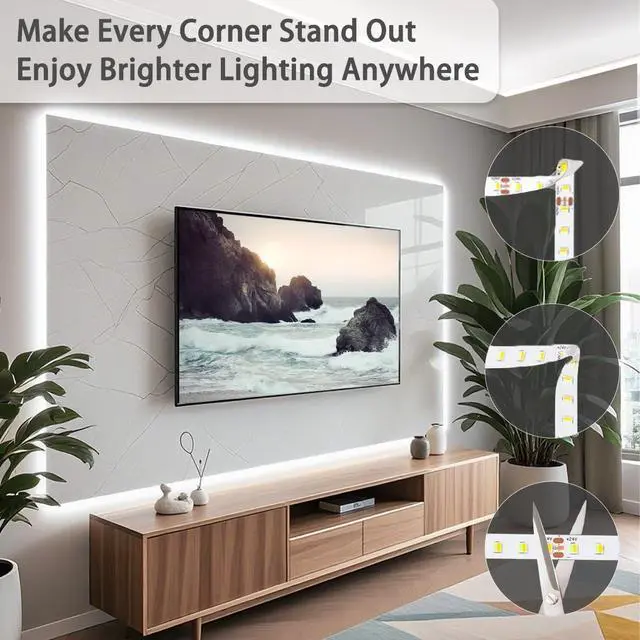 Flexible installation: Led light strips are made of highly flexible material can be easily bends to fit various curved surfaces and cornersperfect for installing inside wardrobes behind TVs or under cabinets. It supports cutting allowing flexible adjustment according to your needs. It can be easily installed in various Spaces such as bedrooms kitchens and living rooms and more.