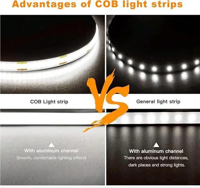 Flexible Design: Industrial-strength adhesive delivers a secure long-lasting bond on smooth dry surfaces; The cob led strip light ultra-flexible design bends easily to fit curved TV backs headboard lighting or bookshelf accentsno tools needed for quick installation6000K