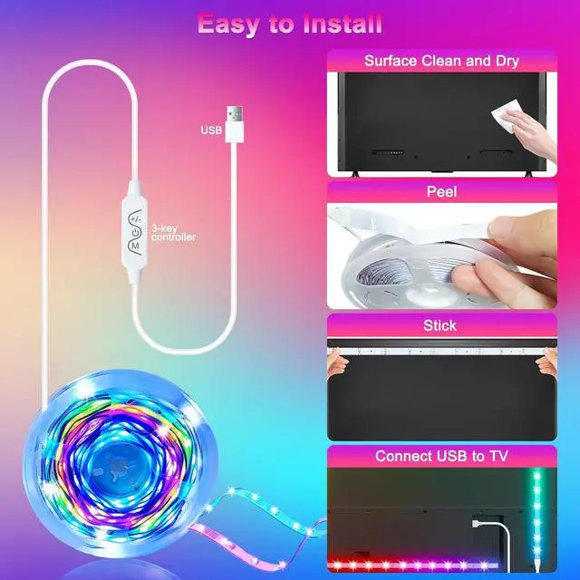 Installation: peel off the tape and stick the usb led light strip on the tvs back. Choosing your favourite led mode to DIY your own tv backlight now!