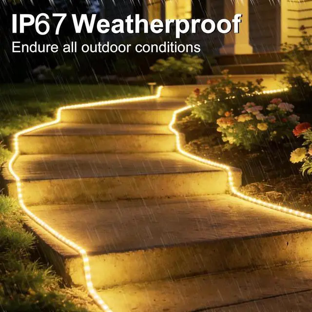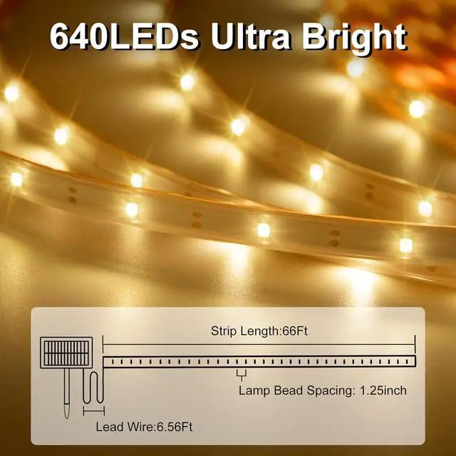 TimerWaterproof IP67 LED Strip Lights: Made with high-quality materials the LED strip lights with 640LED durable and weather-resistant ensuring long-lasting performance in any weather conditions. The warm white flexible tape strip lights adds a cozy touch to your outdoor décorMulti-function