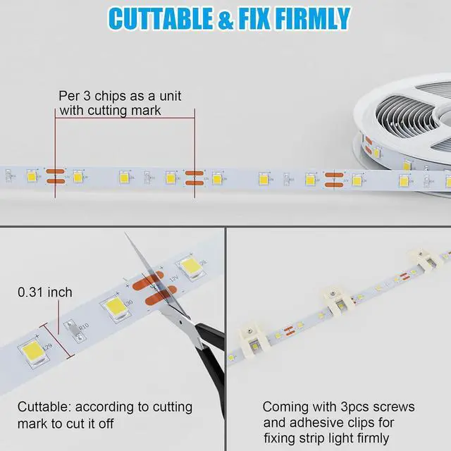Linkable: The light strips made of single-sided board with flexible feature can be bent and won't easy to break its surface is with cutting mark and can be linked by connectors (connectors not included) Easy and Safe to