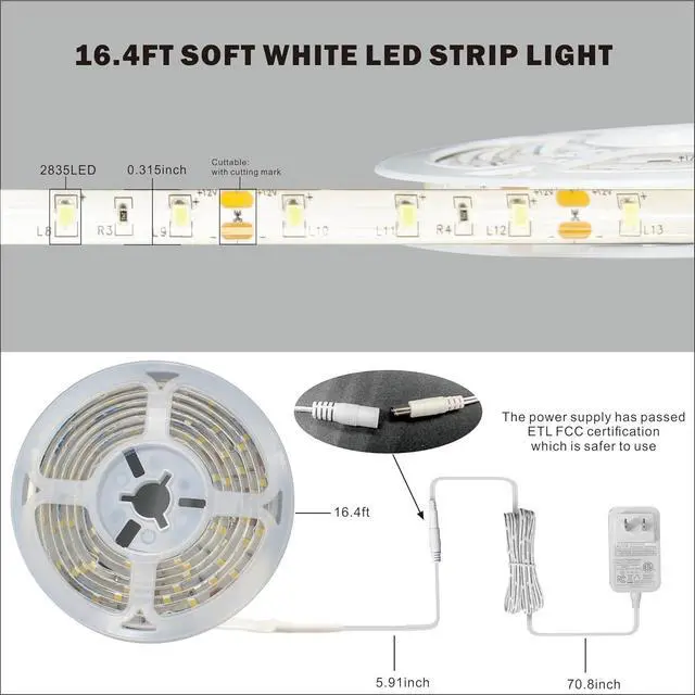 Safe to Use: Powered by a 12V working voltage an ETL listed power adapter and built-in short circuit prevention technology the white LED strip lights has low heat and is incredibly safe and touchable for users. Suitable for gifts