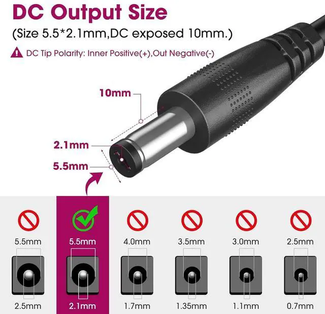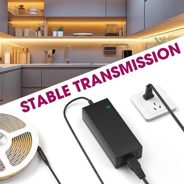 PLUG-AND-PLAY: Direct wall outlet insertion no hardwiring or soldering neededIncludes output cable with a standard 5.5 x 2.1 mm DC jack (positive tip) for seamless connection to strips controllers or dimmers; User-friendly no electrician required