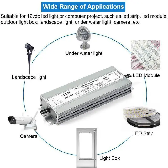 Range of Applications]: Converts 110V AC to 12V DC widely use for led strip lights led landscape lighting pool lights outdoor led signs modules[Long