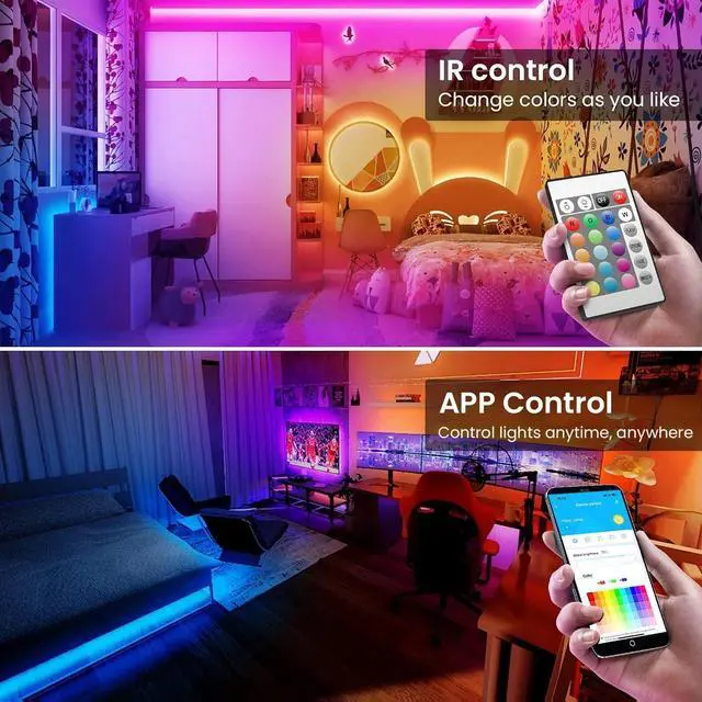 Music: Have a built-in microphone the led light strip Change colors with the ambient sound the lights flash along with your music beats and shows how lights changing with the rhythm. The lights for room can change color and sync with the rhythm of any sound and musicDiy