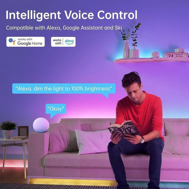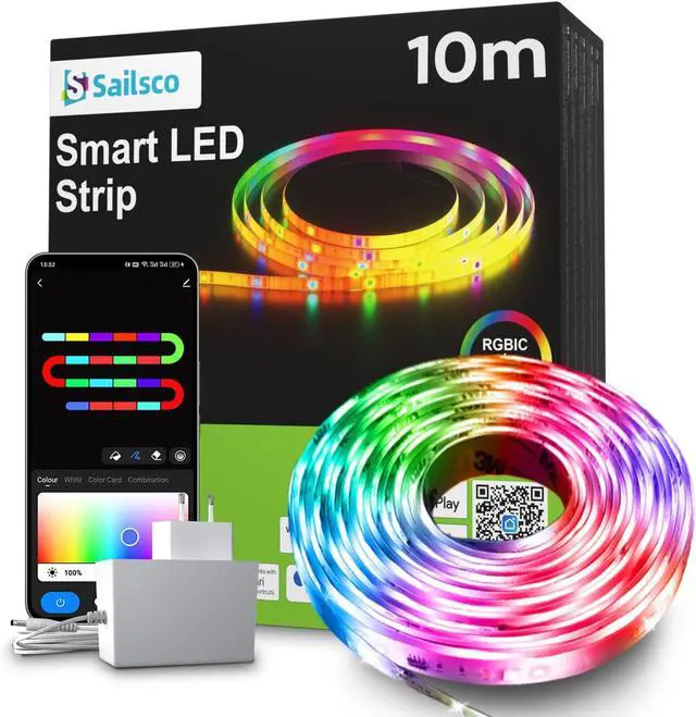 Bluetooth APP Control+Remote ControlThe LED strip can be controlled by Bluetooth via the APP. The APP is compatible with all kinds of smartphones. The LED strip 32.8 ft can be adjusted by different color values so that tens of millions of colors can be achieved.