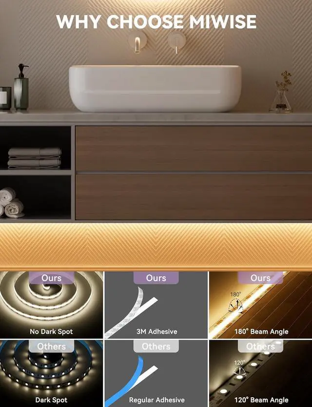 Professional IlluminationMIWISE 5V USB COB LED Strip Light features 640 LEDs high-density chip layout and CRI90+ delivering uniform soft flicker-free lighting. Whether for precision tasks on workbenches home reading or commercial displays it ensures shadow-free glare-free professional lighting effectsTouch Dimming & Memory FunctionDesigned with intuitive touch controls and memory function the MIWISE USB COB LED Strip Light allows effortless brightness adjustment via a simple tap on the controllerno complex buttons required. Also can automatically preserves brightness settings prior to power-offCuttable & Connectable This USB COB LED Strip Light can be cut every 12mm/ 0.47 in at the cutting marks and the cut strip light can also be reconnected at these cutting marks by soldering or using connectors(